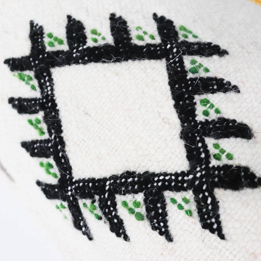 Description Long Lumbar pillow with stunning Berber motifs expressed by its own Artisans in Morocco. Fabric has been handcrafted from fine wool and natural dyes then refashioned by us to create...
